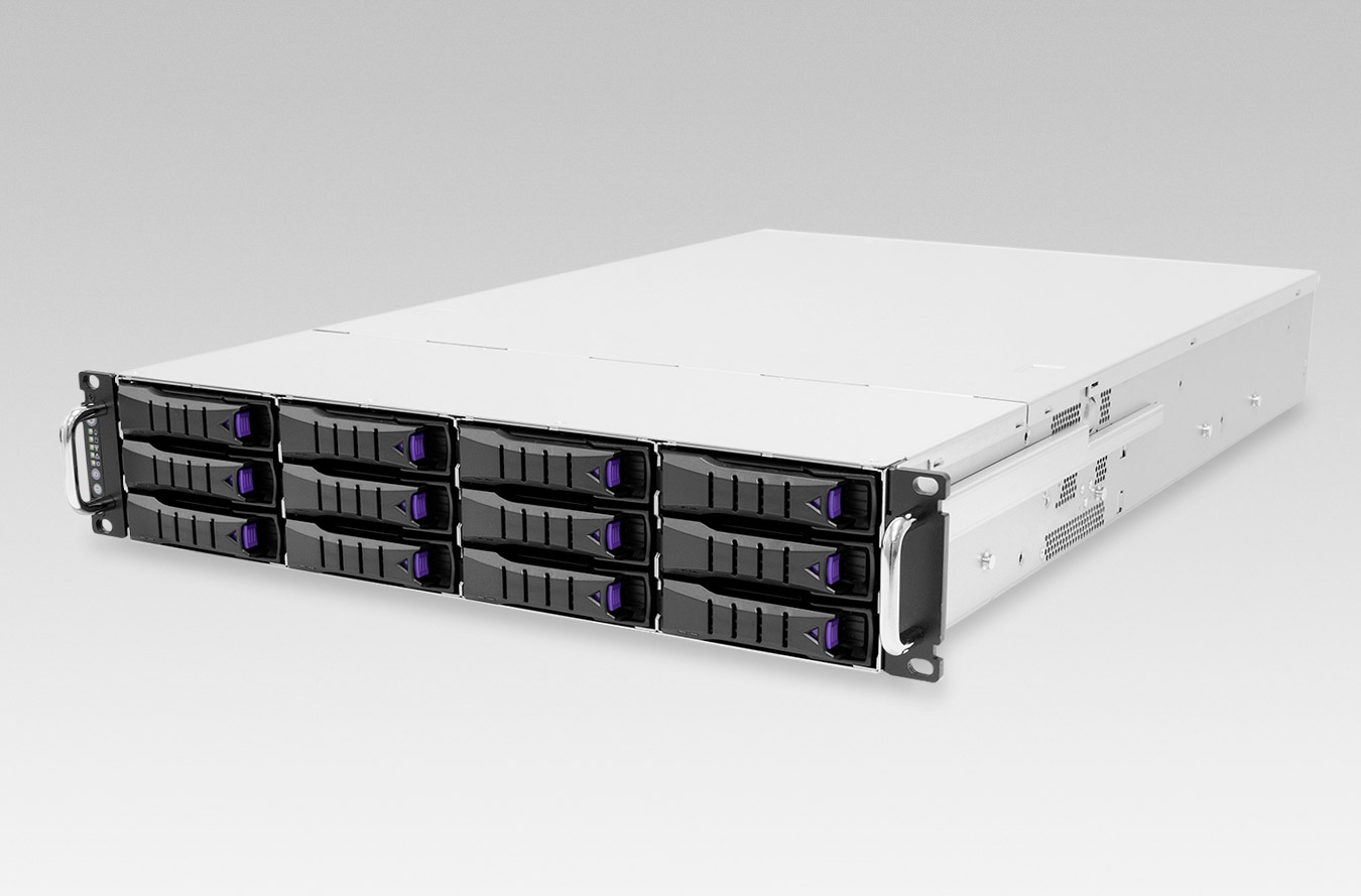 • Hochwertiges 19" 2HE-Rackgehäuse mit 12 Hot-Swap Wechselrahmen